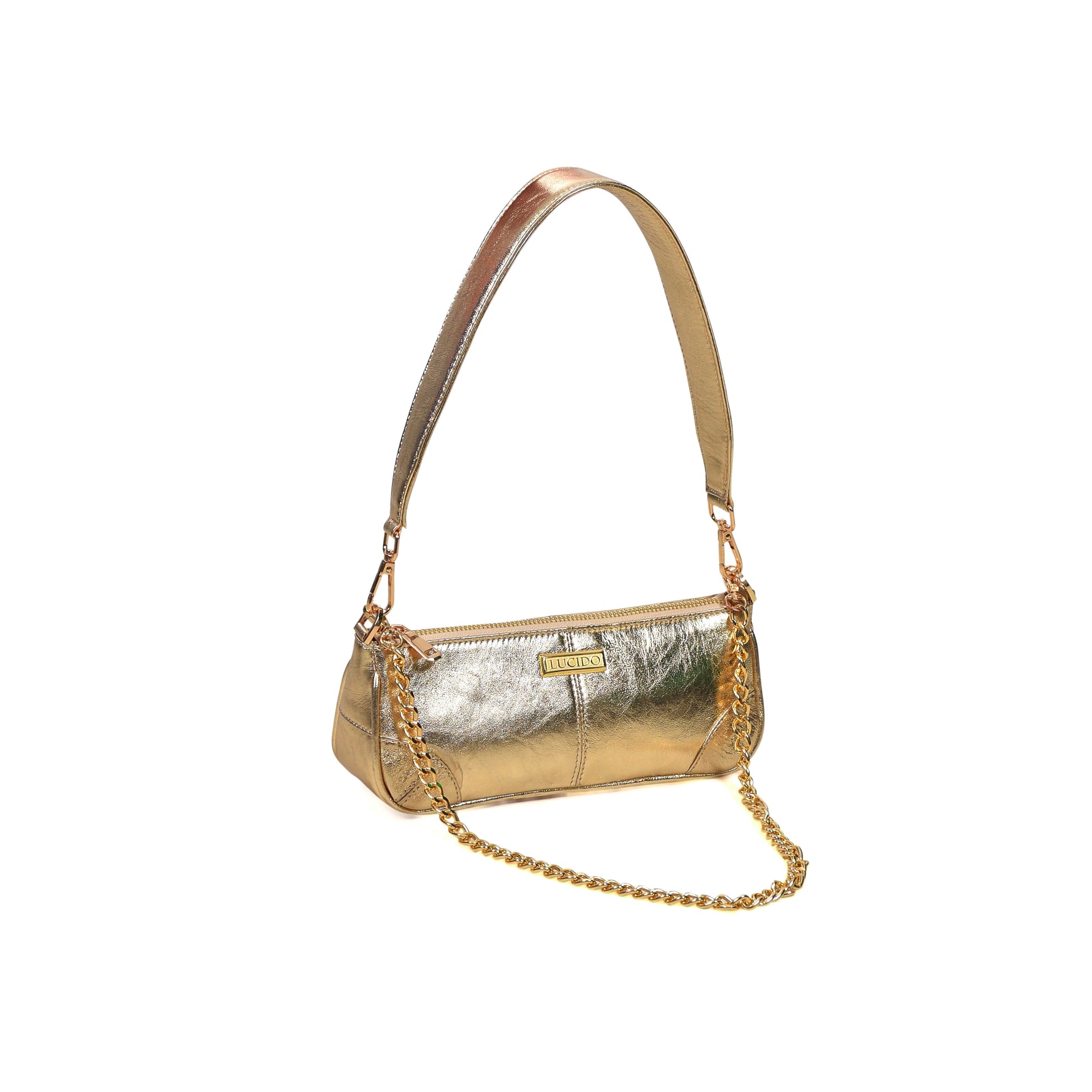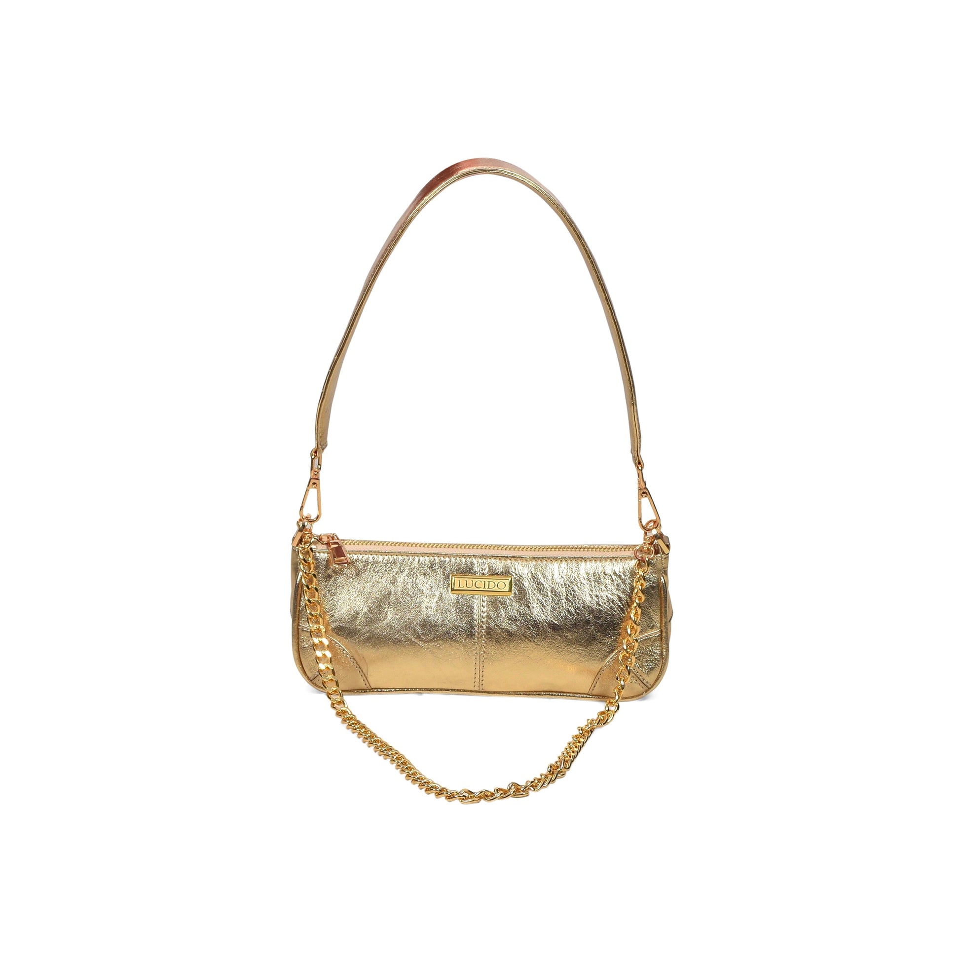 The Aurea bag brings together contemporary chic and timeless luxury. Crafted from premium genuine leather, its sleek rectangular silhouette is accented with a detachable gold-tone chain, giving you the freedom to style it as a shoulder bag or carry it with a polished edge. Designed with a secure zip closure and compact structure, Aurea balances sophistication with practicality, making it the perfect accessory for evenings, special occasions, or adding instant refinement to your daily style.