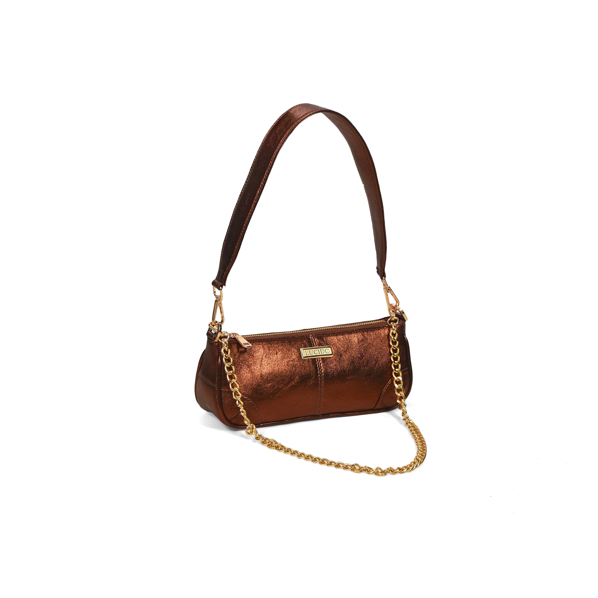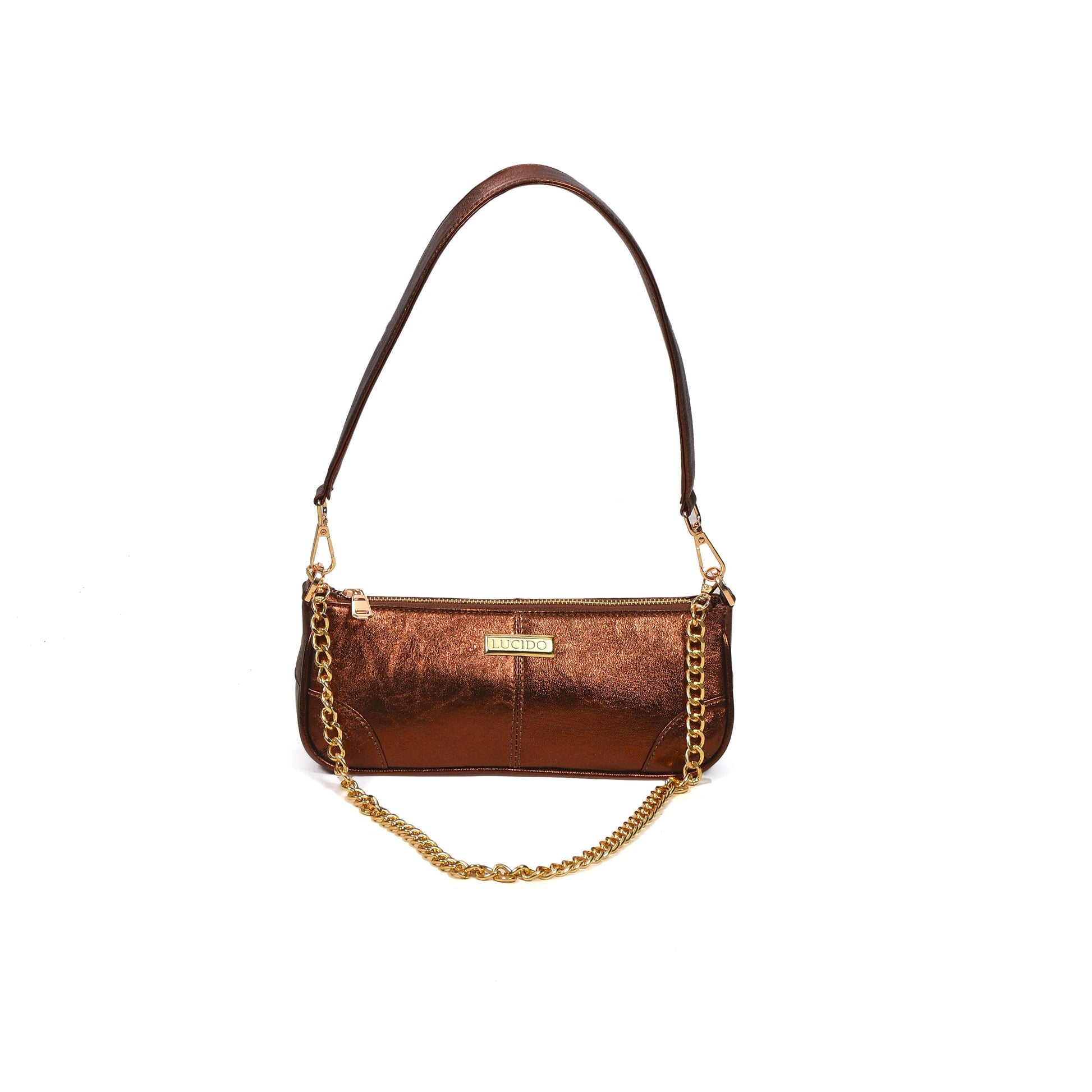 The Aurea bag brings together contemporary chic and timeless luxury. Crafted from premium genuine leather, its sleek rectangular silhouette is accented with a detachable gold-tone chain, giving you the freedom to style it as a shoulder bag or carry it with a polished edge. Designed with a secure zip closure and compact structure, Aurea balances sophistication with practicality, making it the perfect accessory for evenings, special occasions, or adding instant refinement to your daily style.