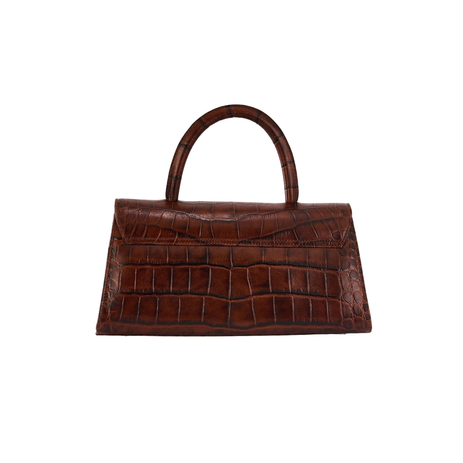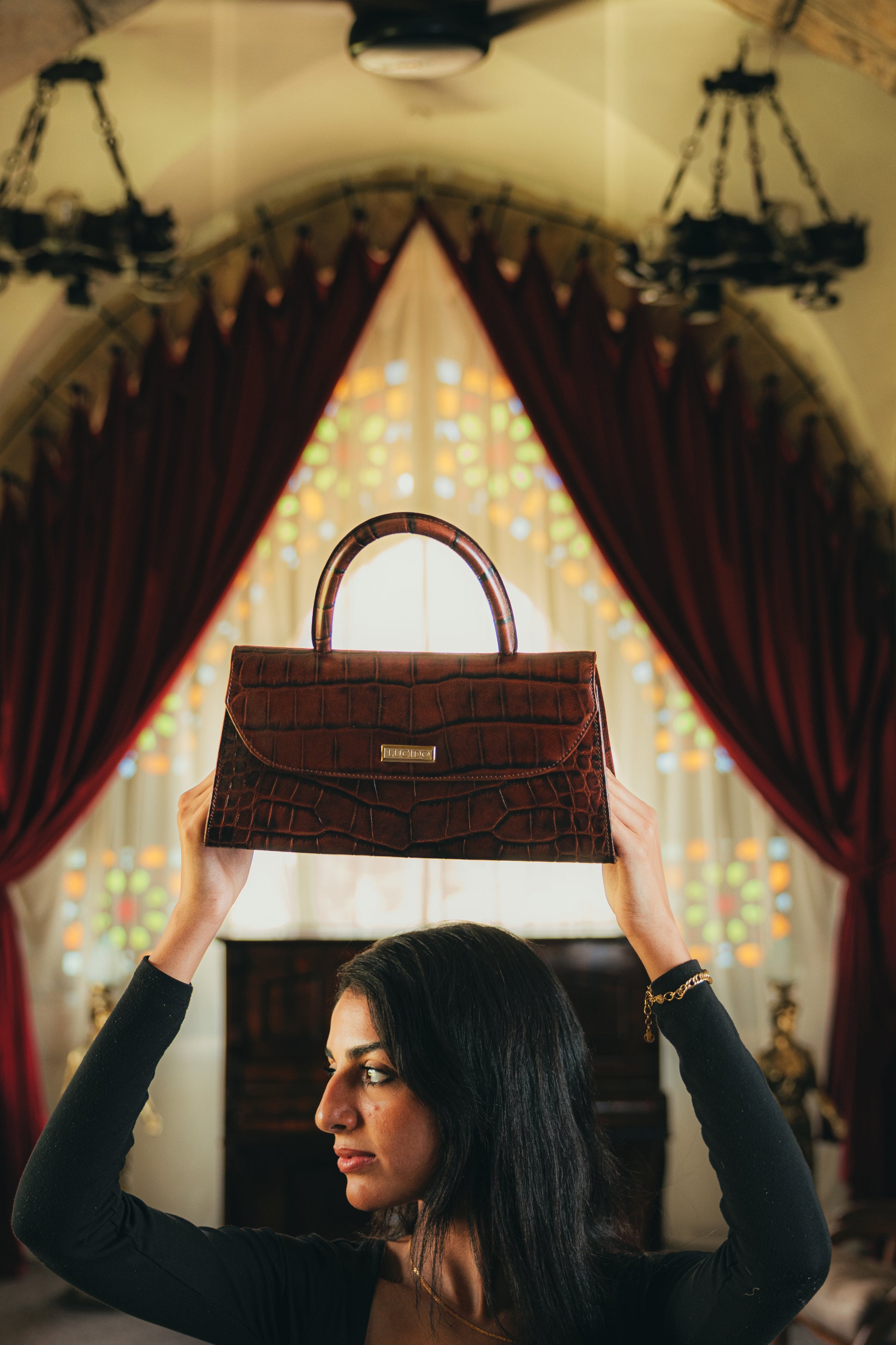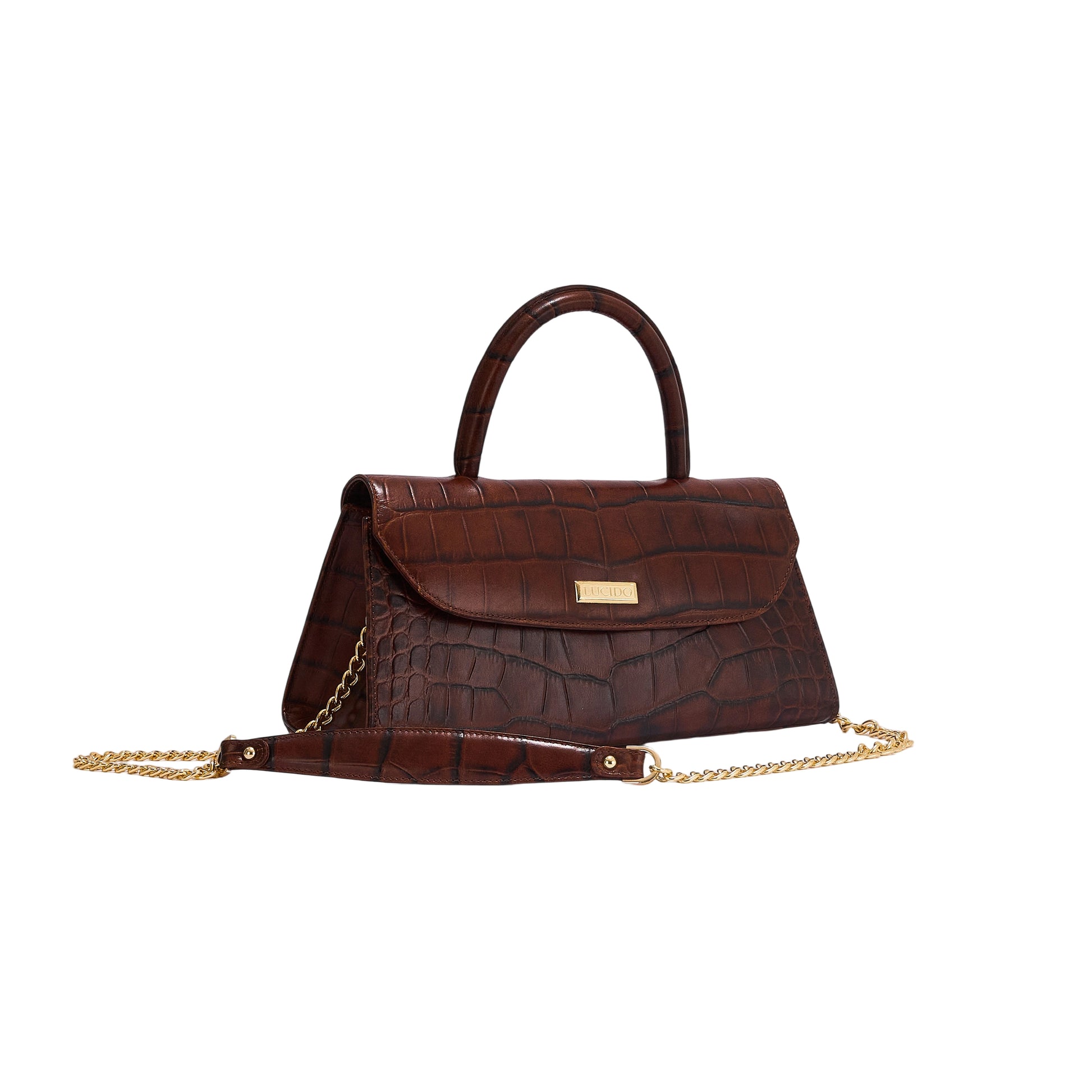 The Eleganza bag is crafted for the modern woman who desires timeless elegance with a touch of boldness. Made from premium croc-embossed genuine leather, its rich texture and deep finish exude luxury. The structured silhouette is complemented by a sleek top handle and a detachable chain strap, offering versatile styling for both day and evening occasions. Finished with a polished gold-tone logo plate, the Eleganza is more than just a bag—it’s a statement of refined taste and effortless sophistication.