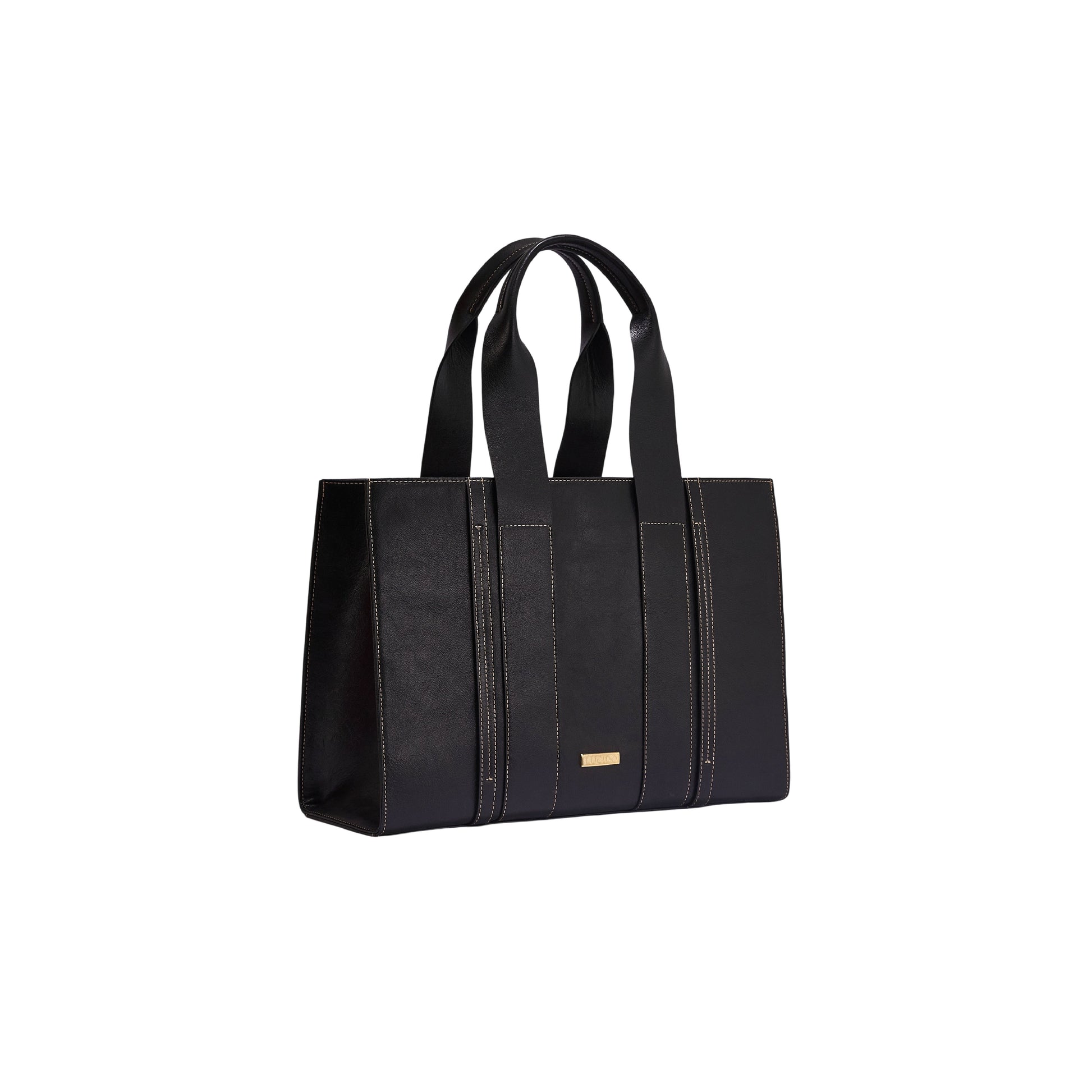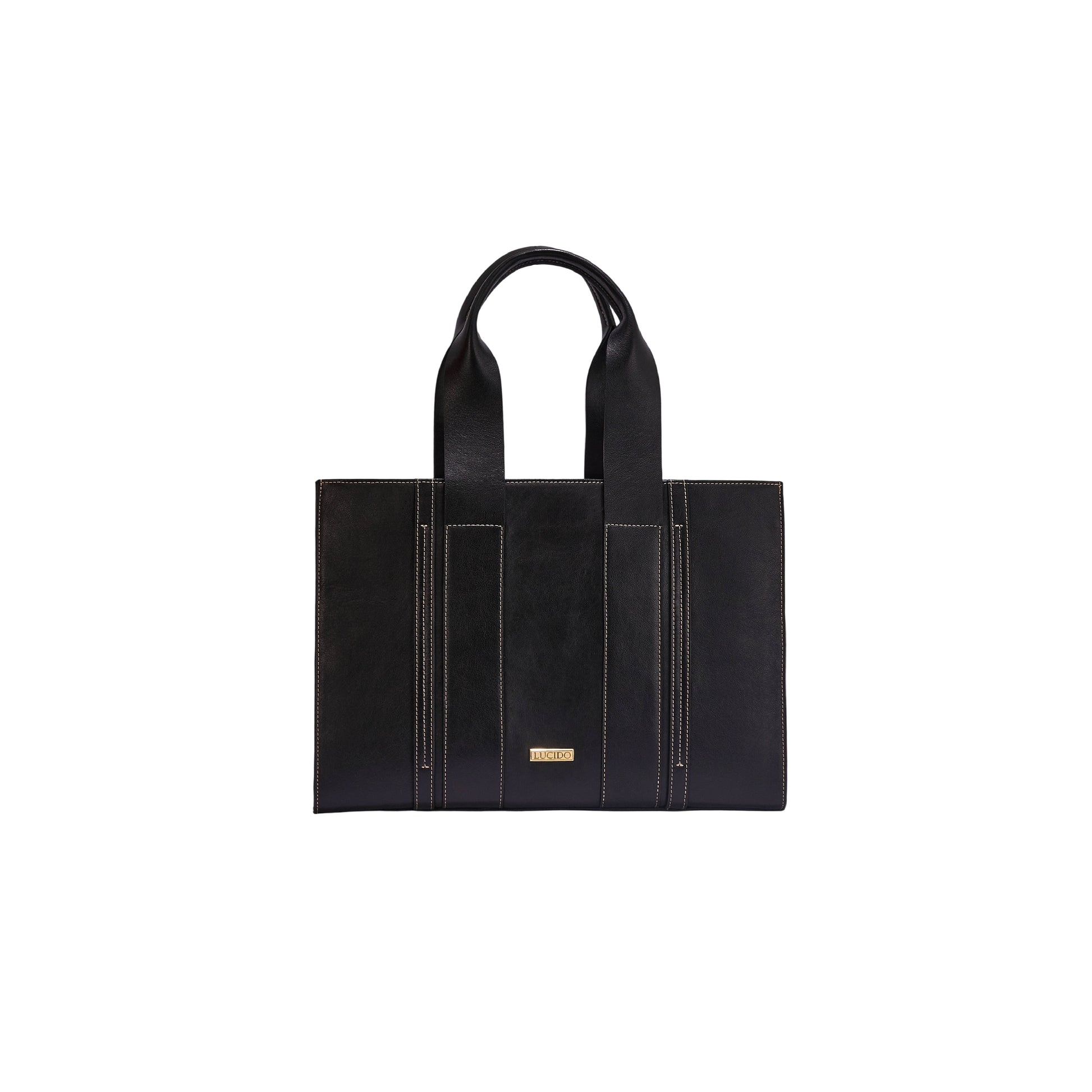 - Distinct square silhouette with refined stitching details